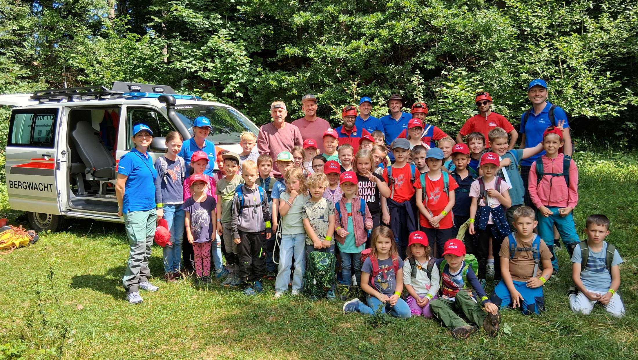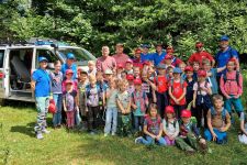 Zur nun mittlerweile 10. Veranstaltung der NAJU Steinheim fanden sich am dritten Samstagmorgen im Juli 38 Kinder vor Ort an der Schreiberhöhle ein. Die NAJU-Betreuer*innen waren wieder bestens vorbereitet, so hatten sie unter anderem in der frühzeitigen Planung zur Heidenheimer Bergwacht über Stefan Österreicher Kontakt geschaffen, der dann als Einsatzleiter mit drei weiteren ehrenamtlich aktiven Einsatzkräften an der Schreiberhöhle selbst aktiv den Höhlenabstieg/-aufstieg leitete. In einer Einführung wurde über ein Ratespiel ‚Was bin ich?‘ gezielt zum Thema Fledermäuse geführt, wobei auf die Merkmale, Großgruppen, Nahrung und somit auf die besondere ökologische Bedeutung als biologische Schädlingsvertilger, den Lebensraum, die Fortpflanzung und die Gefährdung eingegangen wurde. In Gruppen aufgeteilt erfuhren die Kinder dann etwas über die Fledermausquartiere und über deren Echoorientierung. Das Besondere an der Veranstaltung war aber für die Kinder die Schreiberhöhle als Fledermausquartier kennen zu lernen, was für sie allein schon wegen des nicht einfachen Zugangs überaus spannend war. Zudem konnten manche tatsächlich in der kühlen und feuchten Höhle auch Fledermaus sehen. Dafür gilt es seitens der NAJU Steinheim ein herzliches und großes Dankeschön den Einsatzkräften der Heidenheimer Bergwacht auszusprechen, welche die Aktion tatkräftig und mit aller Vorsicht unterstützten, so dass alles nicht nur unfallfrei abgelaufen ist, sondern zu einem besonderen Erlebnis für die teilnehmenden Kinder wurde.